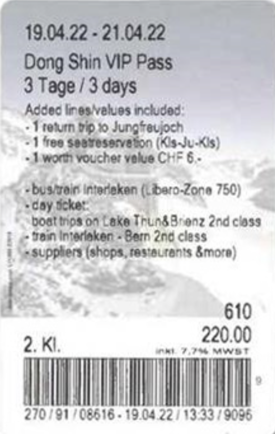 이메일로 받은 동신항운 할인쿠폰을 인터라켄 현지에서 여권과 함께 제시하고 구매가능합니다.