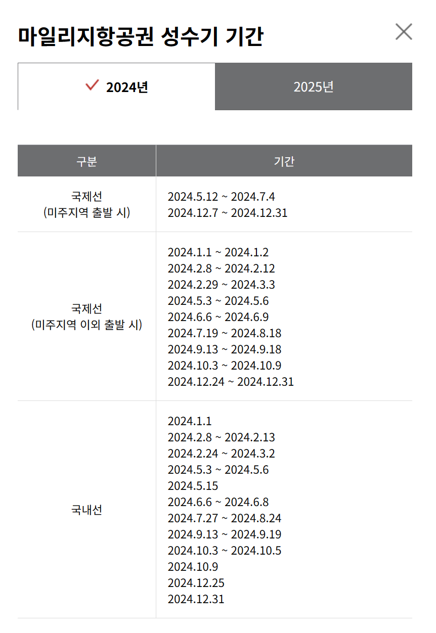 제가 가는 날짜는 성수기가 아니라서 인당  총 125,000 마일리지씩 차감되었습니다.