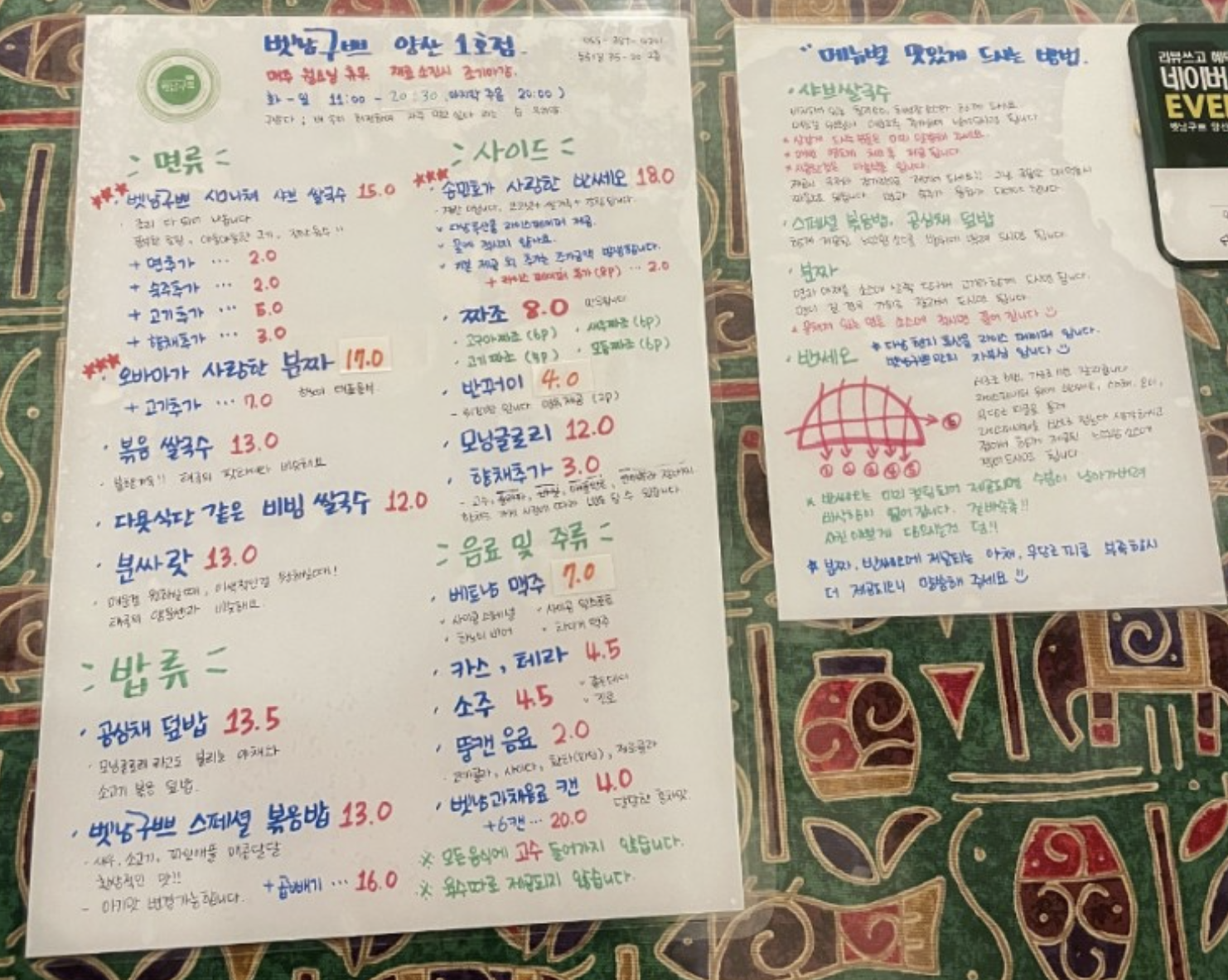 사진으론 반쎄오가 좀 작아보이지만 안에 숙주와 고기, 새우가 들어가 있고 크기도 크다.