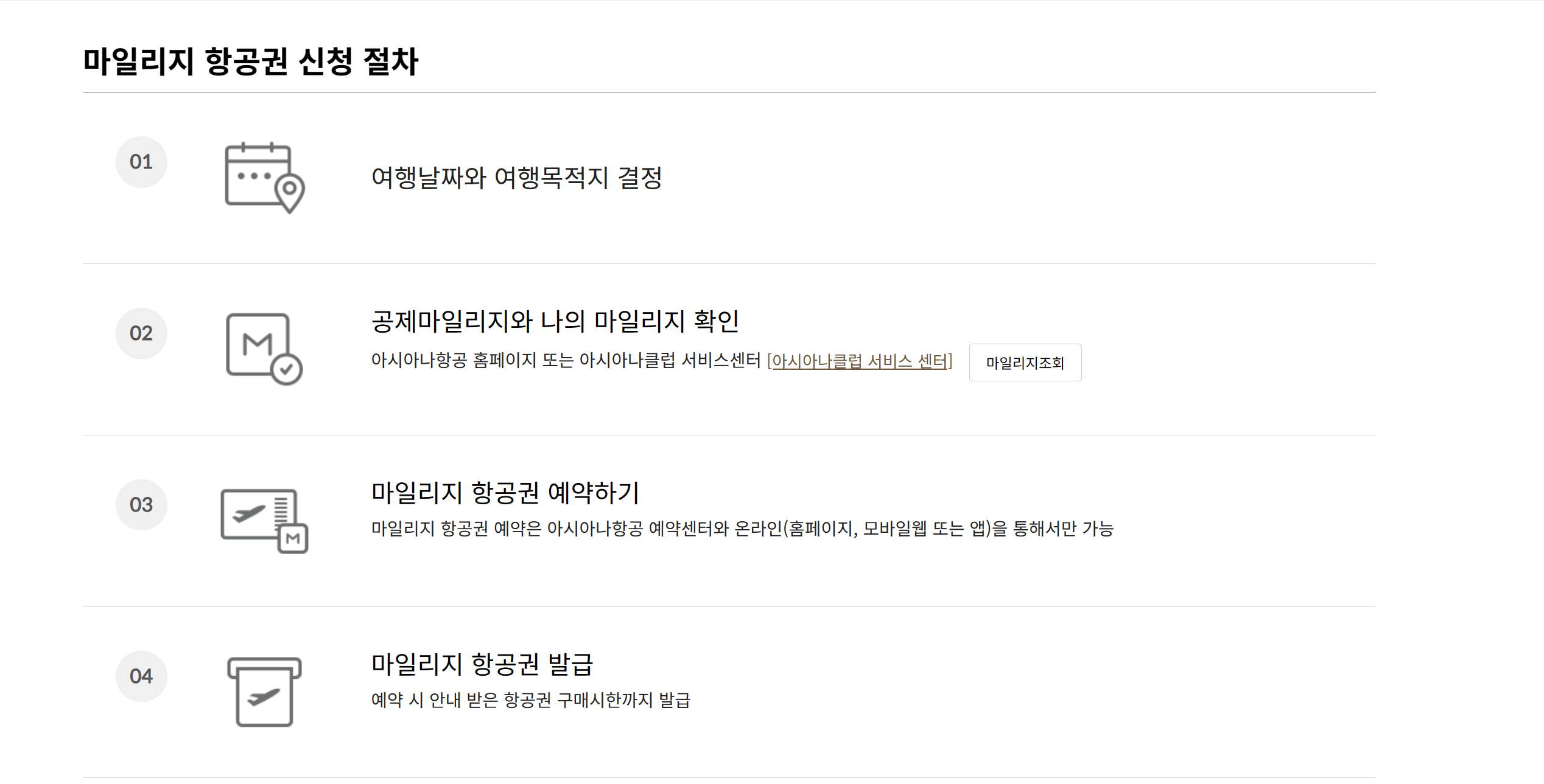 아시아나 항공 마일리지 공제표 및 성수