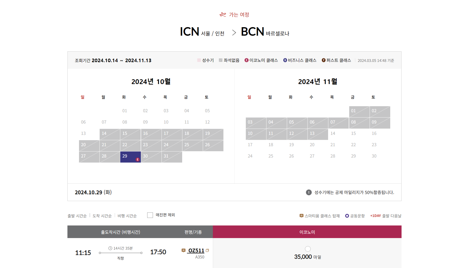 바르셀로나 아시아나/아시아나/스타얼라이언스 마일리지 비즈니스 항공권 예약하기
