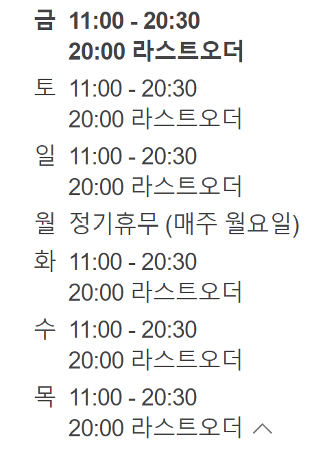 월요일만 휴무인지라 그 한 번 가려고 했으나 ㅠ.ㅠ 휴무라서 못 가서 아쉬웠다.